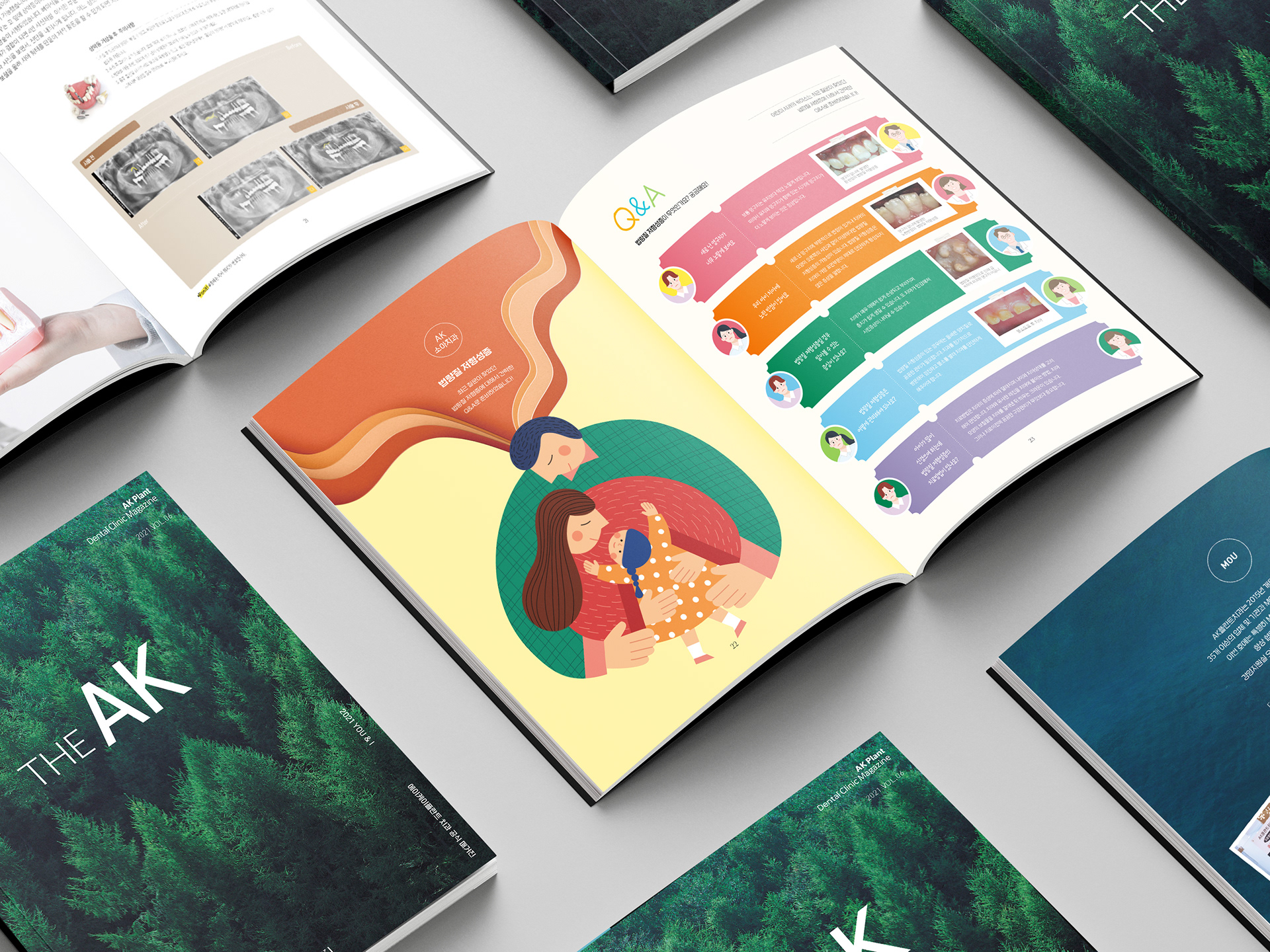 『THE AK 매거진』은 에이케이플란트치과의 한 해 소식을 고객에게 친근하게 전달하기 위해 제작된 병원 매거진입니다. 본 작업은 클라이언트의 의뢰로 진행한 개인 외주 디자인 프로젝트로, 치과를 찾은 내원객들이 대기 시간 동안 가볍게 읽을 수 있도록 따뜻하고 편안한 분위기와 간결한 레이아웃 구성에 중점을 두었습니다.